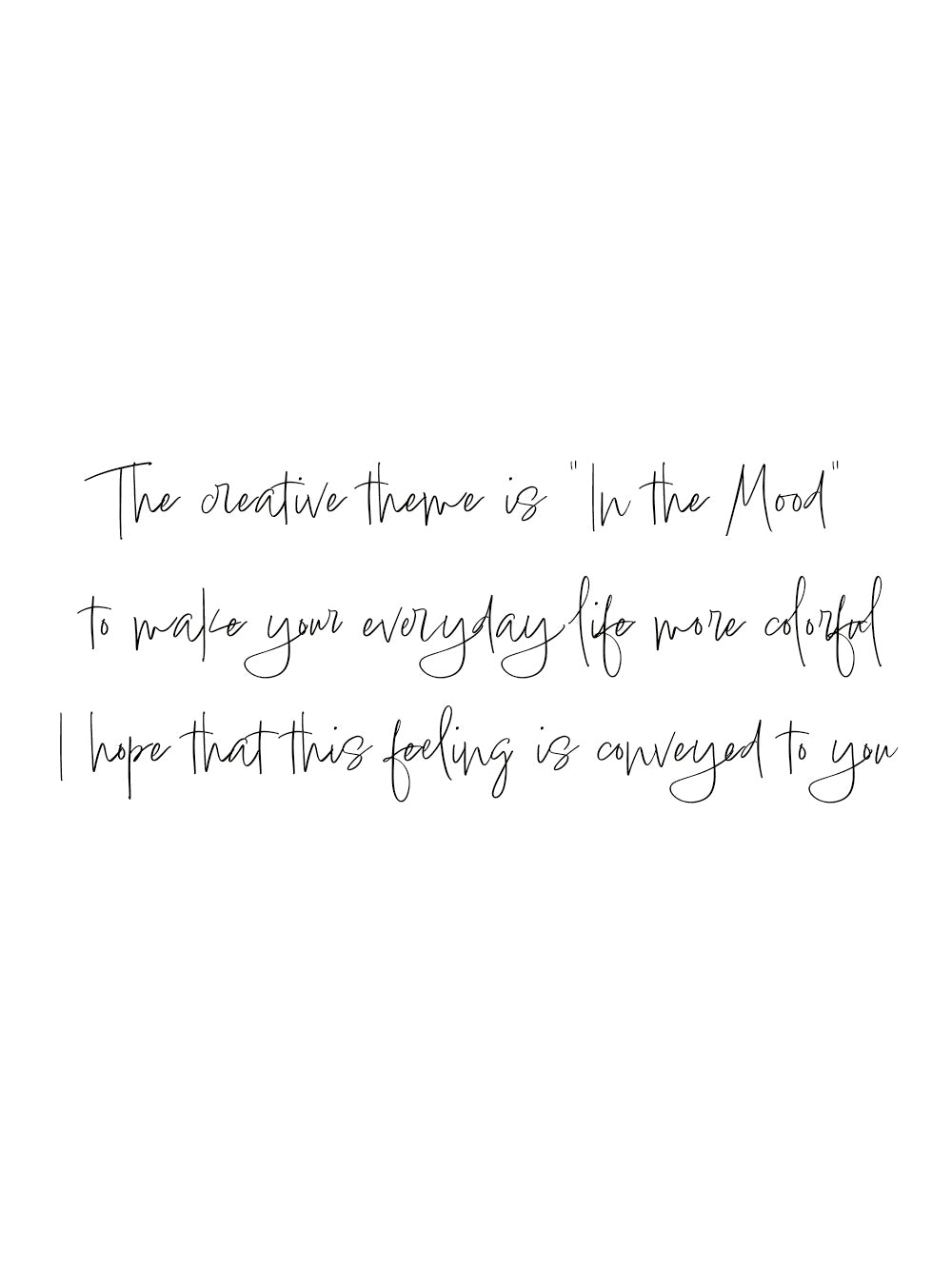 メッセージプリントのデザインは、アトリエ彩飾案のコンセプトを表記。翻訳:創作テーマは「In the Mood」いつもの日常がカラフルになりますように。そんな想いが届けば幸いです。と綴っています。